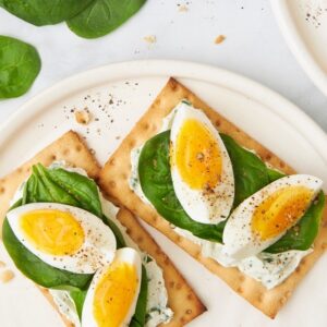 Jammy Egg Wasa with Spinach and Jalapeño Cream Cheese