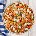This sweet and salty Chex™ mix from Proud Sponsor General Mills combines crunchy Honey Nut Chex, kettle corn, and peanuts, all coated in a rich caramel glaze. Finished with colorful candy-coated chocolates, it’s a fun and festive snack that’s perfect for parties, movie nights, or edible gifting.