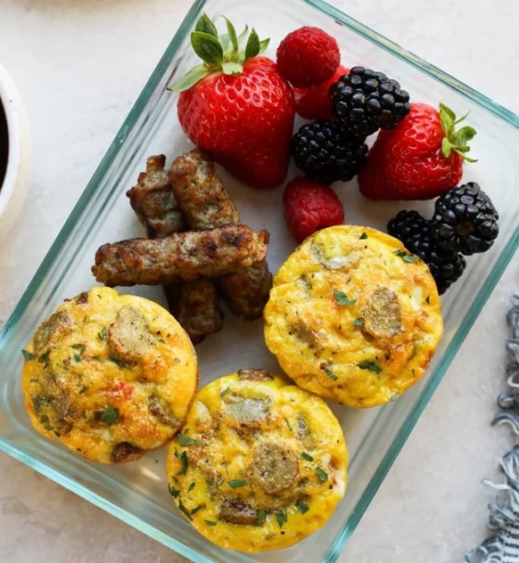 Broccoli, Mushroom and Chicken Sausage Breakfast Strata