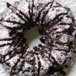 - Preheat the oven to 350 degrees Fahrenheit. Grease a round metal Bundt cake pan and dust it with cocoa powder; set aside.