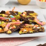 This Spooky Halloween Bark super simple to throw together, but it’s sure to please a crowd of eager trick-or-treaters at your next Halloween party! Or, save this recipe for the day after and use up your leftover Halloween candy to make this deliciously sweet bark from Proud Sponsor Crunchmaster!